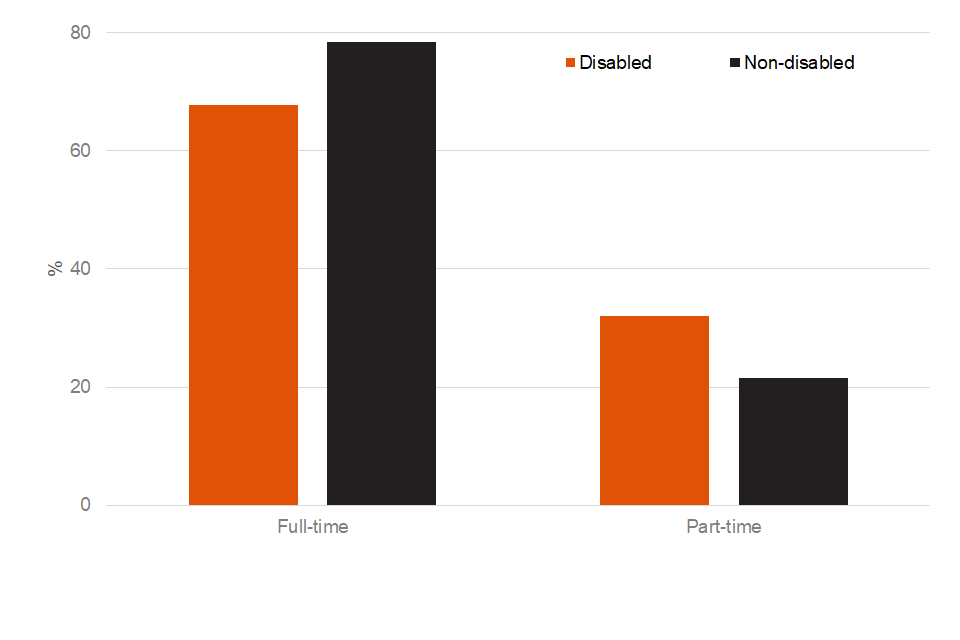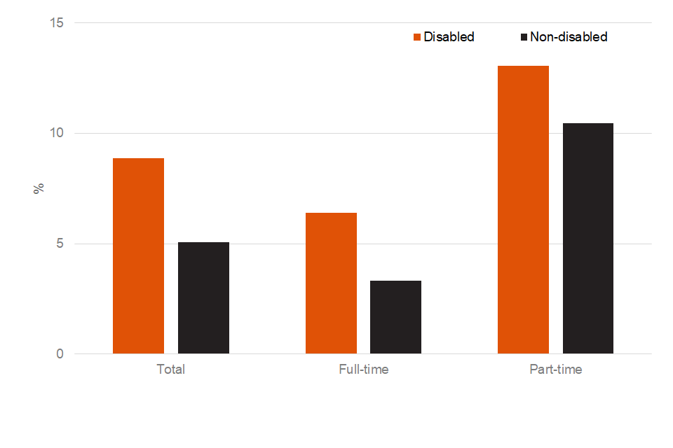 Disabled workers are twice as likely to move out of work if they are working part-time