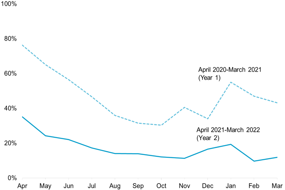 (1) Data collected between April 2020 and March 2022 (inclusive).