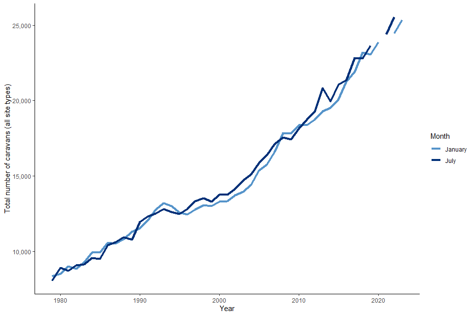 Figure 3: Number of Traveller caravans from 1979 to 2023, England (1)