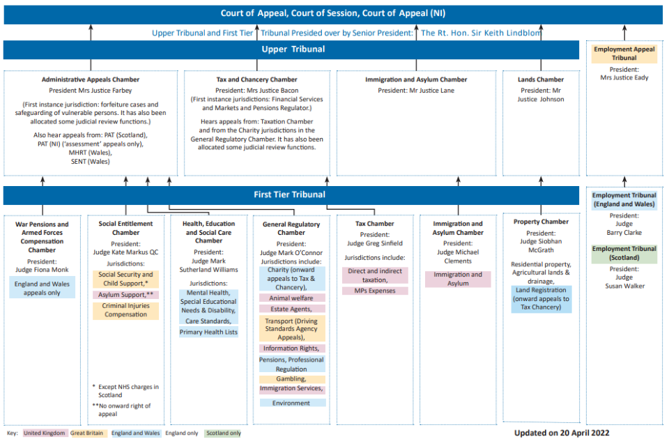 The Upper Tribunal has four Chambers: Tax and Chancery, Immigration and Asylum, Lands and Administrative Appeals.