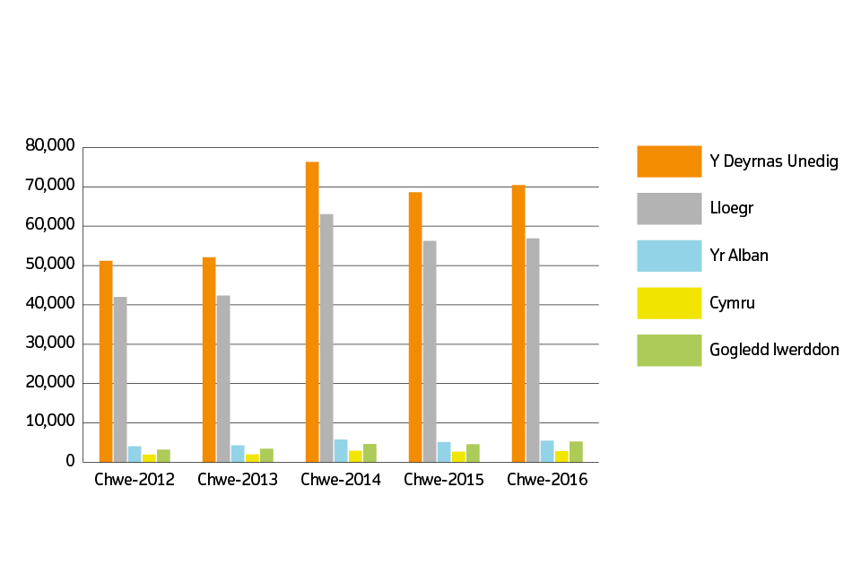 4.2 Nifer y gwerthiannau ar gyfer y DU dros y 5 mlynedd diwethaf