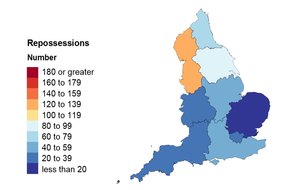 A heat map showing repossessions in England.