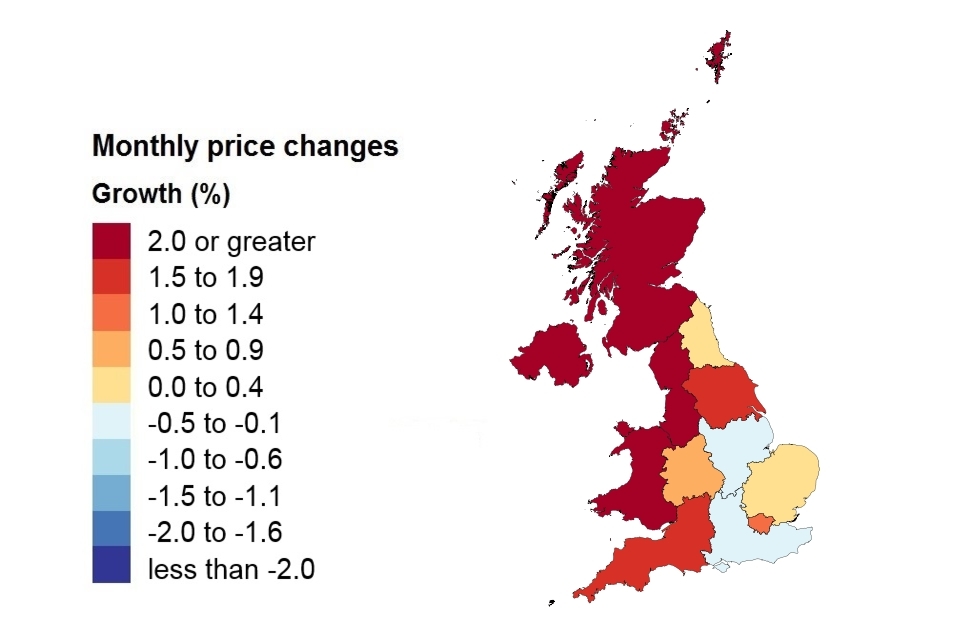 Note: The Northern Ireland figure represents a 3-month change and is not comparable with the other regions and countries.
