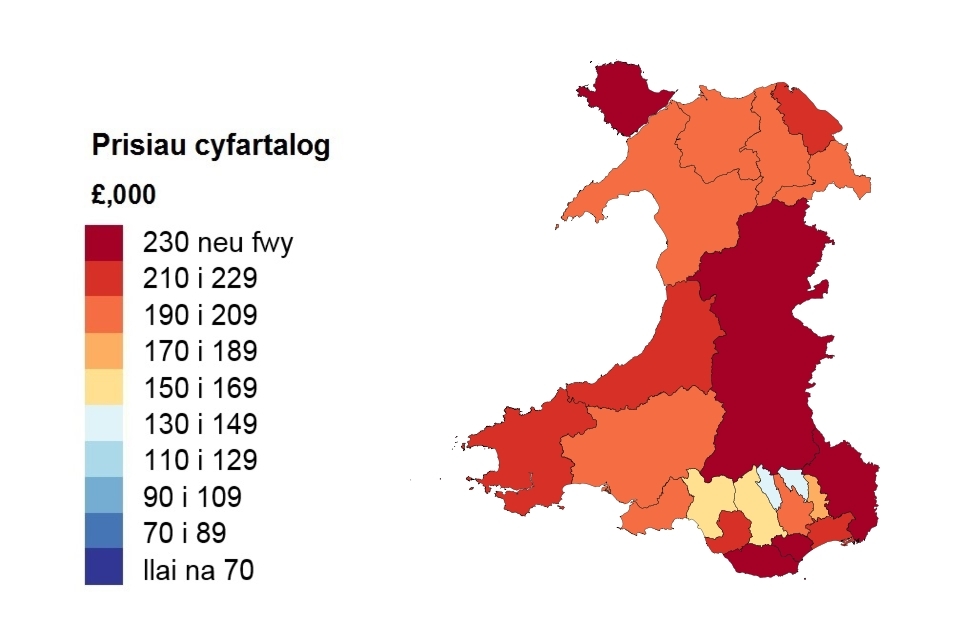 Prisiau cyfartalog yn ôl awdurdod lleol ar gyfer Cymru