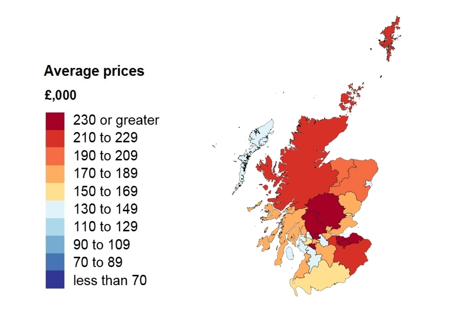 Average house prices in Scotland increased by 5.4% in the 12 months to August 2024, to £200,000 (provisional estimate). This was up from 5.0% (revised estimate) in the 12 months to July 2024 and was higher than the average UK house price annual inflation of 2.8% (provisional estimate) in the 12 months to August 2024.