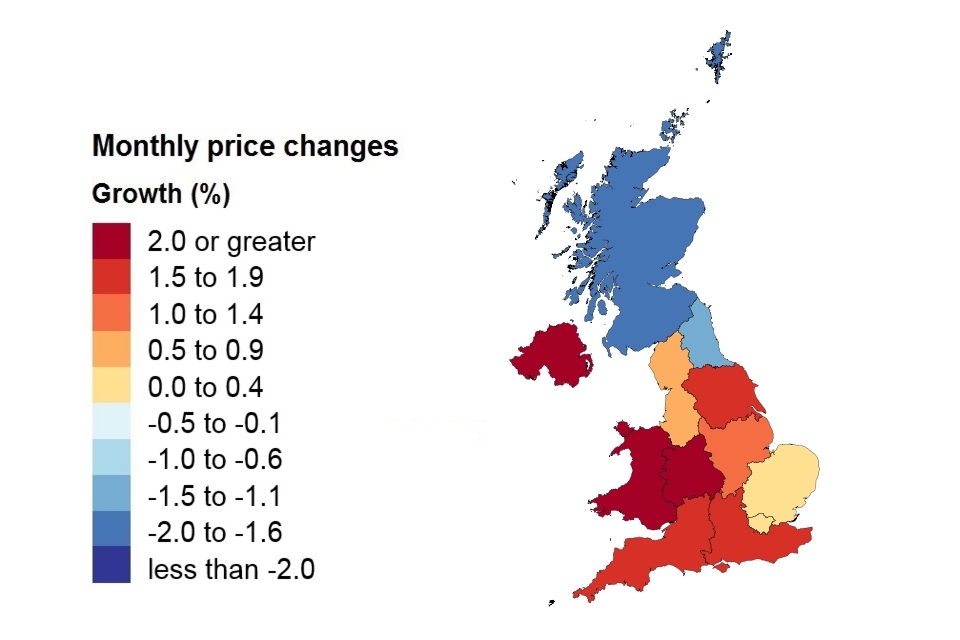 Note: The Northern Ireland figure represents a 3-month change and is not comparable with the other regions and countries.