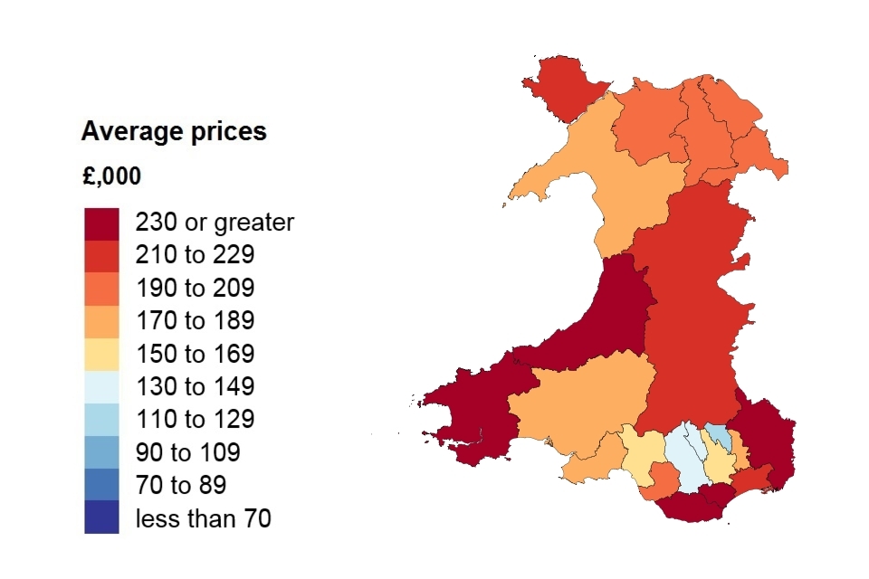 In December 2021, the most expensive area to purchase a property was Monmouthshire, where the average cost was £330,000. In contrast, the cheapest area to purchase a property was Blaenau Gwent, where the average cost was £113,000.