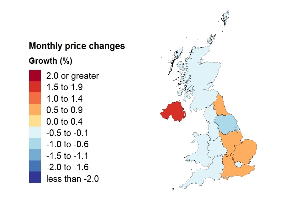 Note: The Northern Ireland figure represents a 3-month change and is not comparable with the other regions and countries.