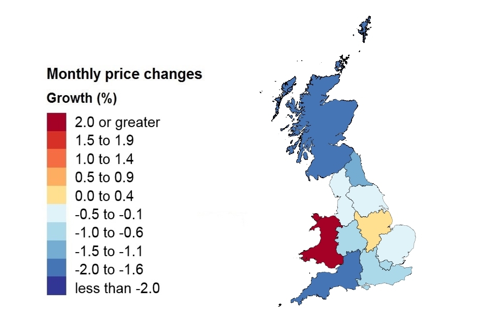 | Country and government office region | Price | Monthly change | Annual change |