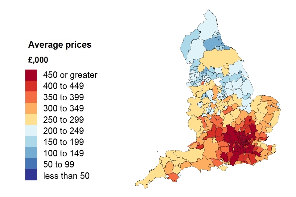| Buckinghamshire | £478,993 | £458,061 | 4.6% |