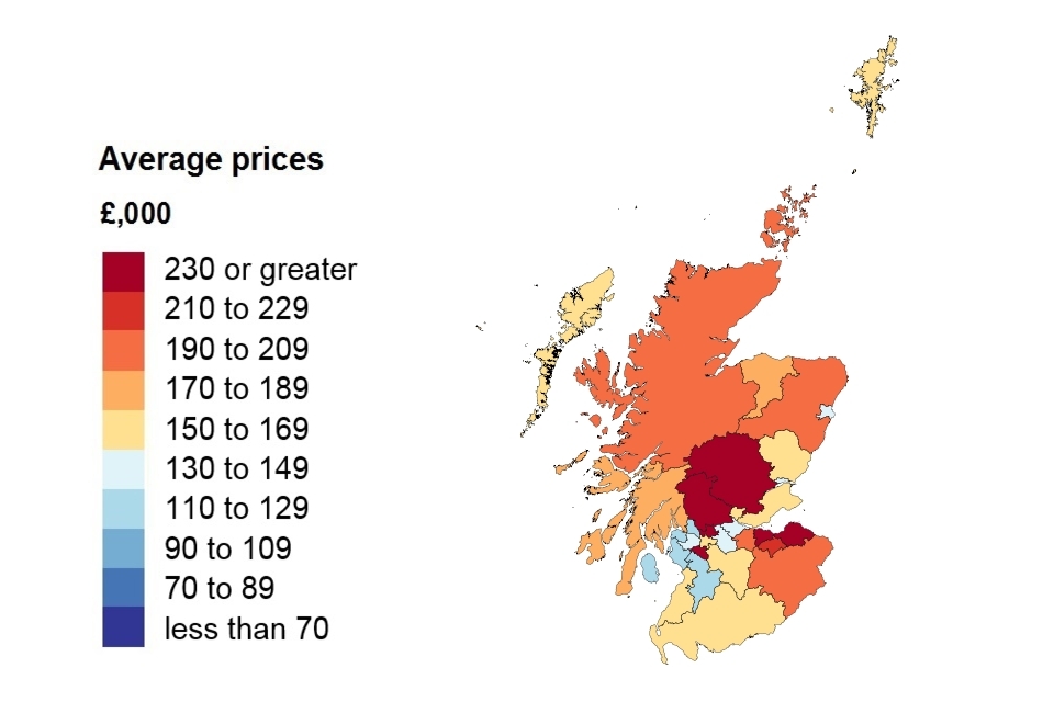 Low numbers of sales transactions in some local authorities, such as Orkney Islands, Na h-Eileanan Siar and Shetland Islands, can lead to volatility in the series.