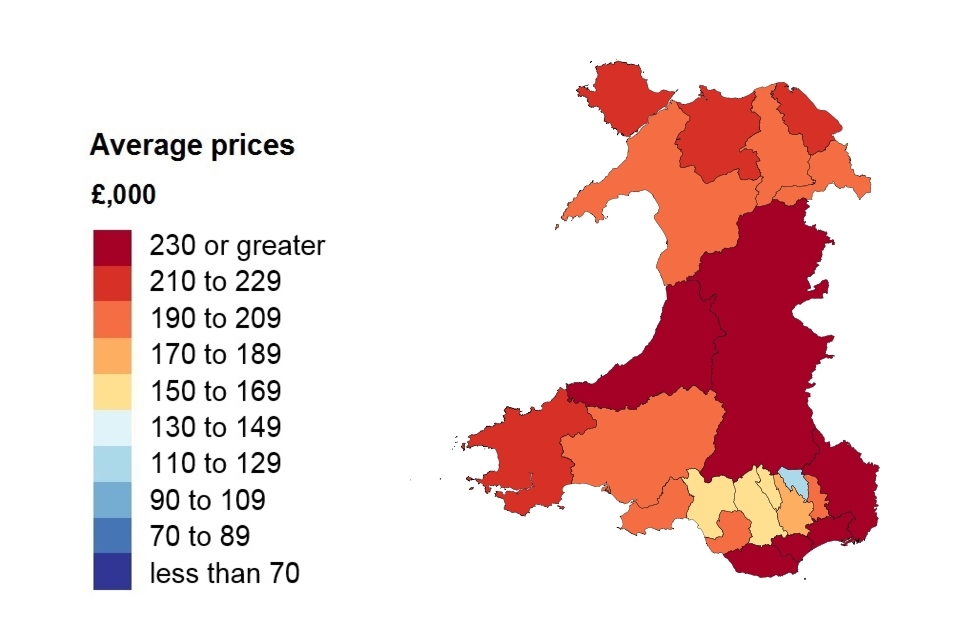In July 2023, the most expensive area to purchase a property was Monmouthshire, where the average cost was £358,000. In contrast, the cheapest area to purchase a property was Blaenau Gwent, where the average cost was £129,000.