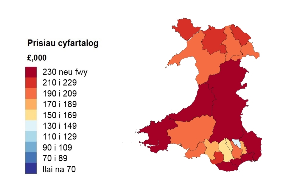 Prisiau cyfartalog yn ôl awdurdod lleol ar gyfer Cymru