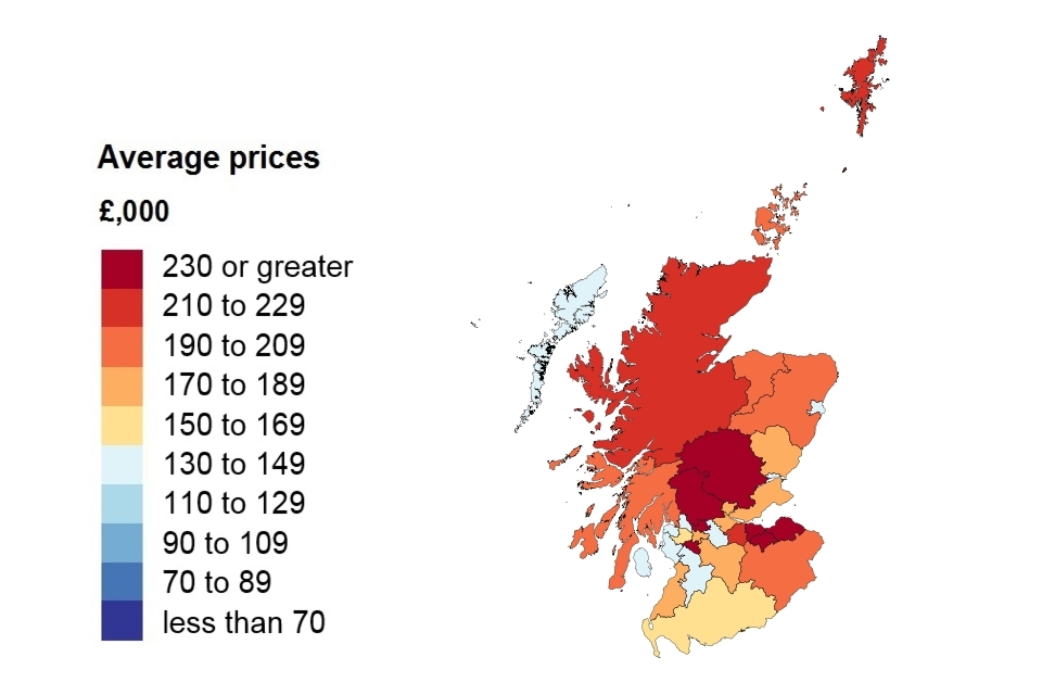 Average house prices in Scotland increased by 6.0% in the 12 months to July 2024, to £199,000 (provisional estimate). This was up from 4.7% (revised estimate) in the 12 months to June 2024 and was higher than the average UK house price annual inflation of 2.2% (provisional estimate) in the 12 months to July 2024.