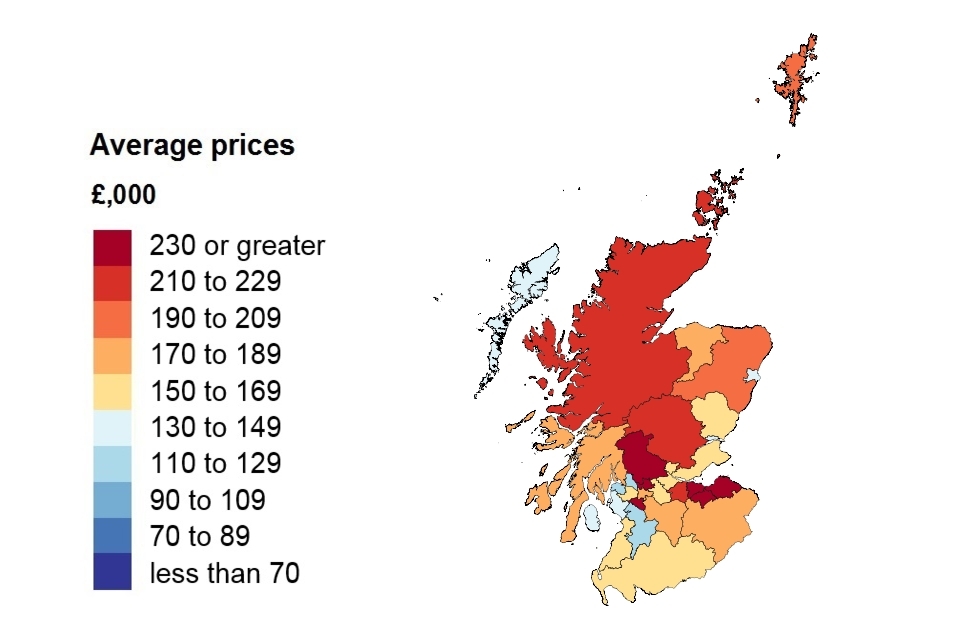Average house prices in Scotland increased by 5.9% in the 12 months to June 2025, to £192,000 (provisional estimate). This was up from 4.1% (revised estimate) in the 12 months to May 2025 and was above than the average UK house price annual inflation of 3.7% (provisional estimate) in the 12 months to June 2025.