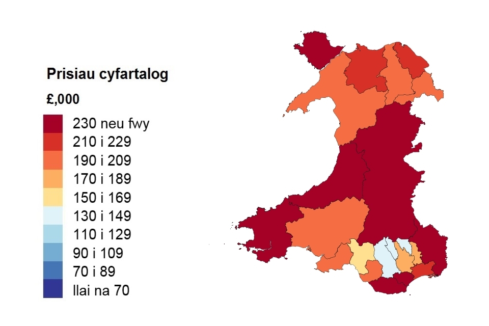 Prisiau cyfartalog yn ôl awdurdod lleol ar gyfer Cymru