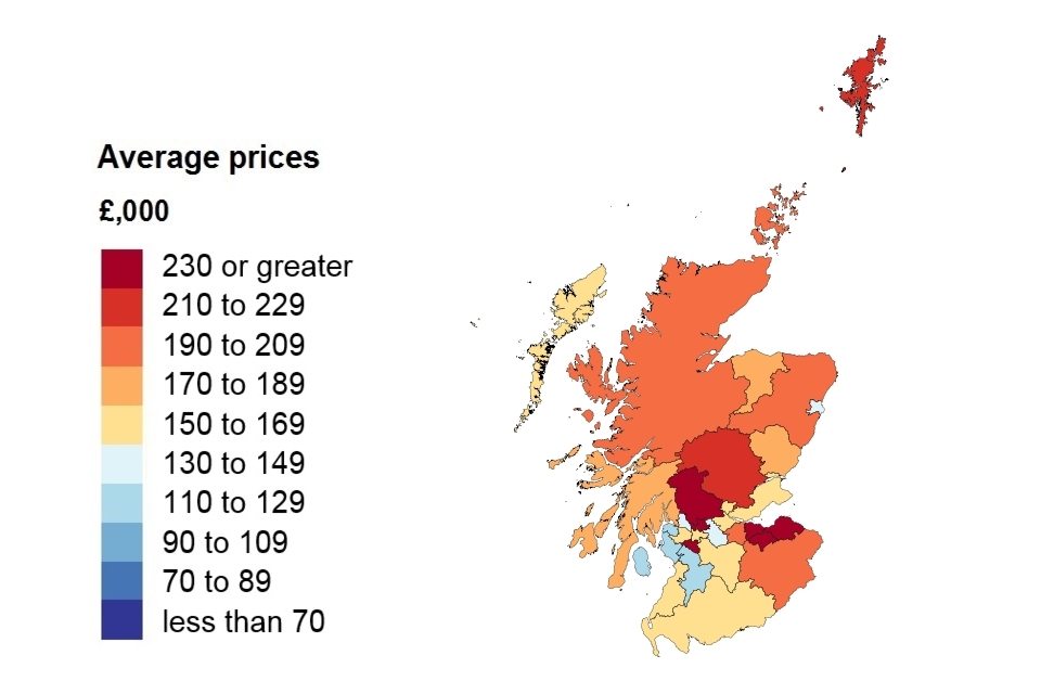 Low numbers of sales transactions in some local authorities, such as Orkney Islands, Na h-Eileanan Siar and Shetland Islands, can lead to volatility in the series.