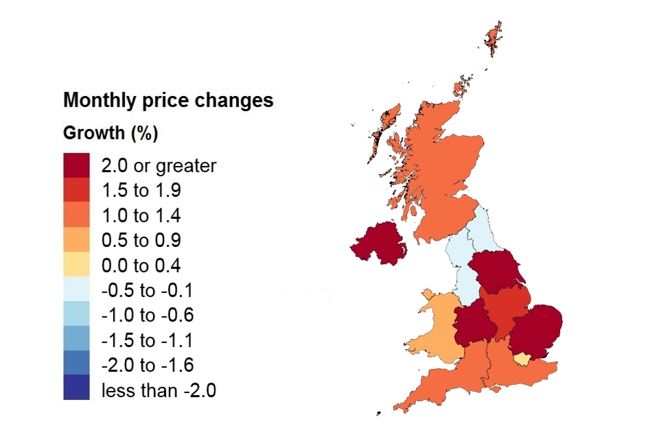 Note: The Northern Ireland figure represents a 3-month change and is not comparable with the other regions and countries.