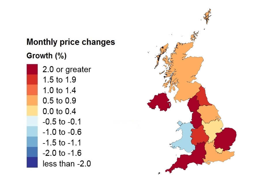 Note: The Northern Ireland figure represents a 3-month change and is not comparable with the other regions and countries.