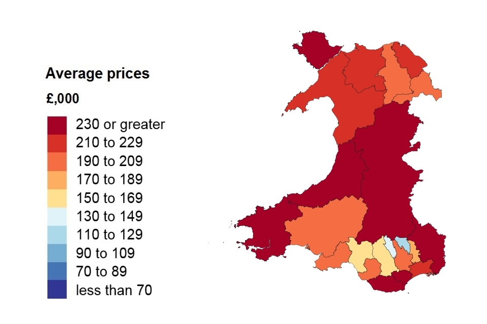 | Isle of Anglesey | £238,450 | £244,151 | -2.3% |