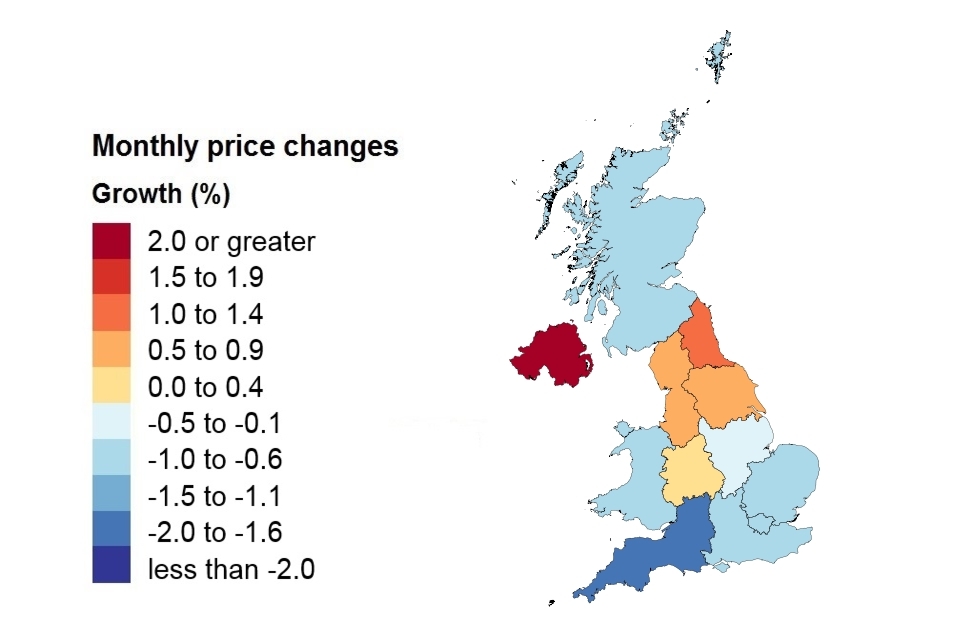 Note: The Northern Ireland figure represents a 3-month change and is not comparable with the other regions and countries.