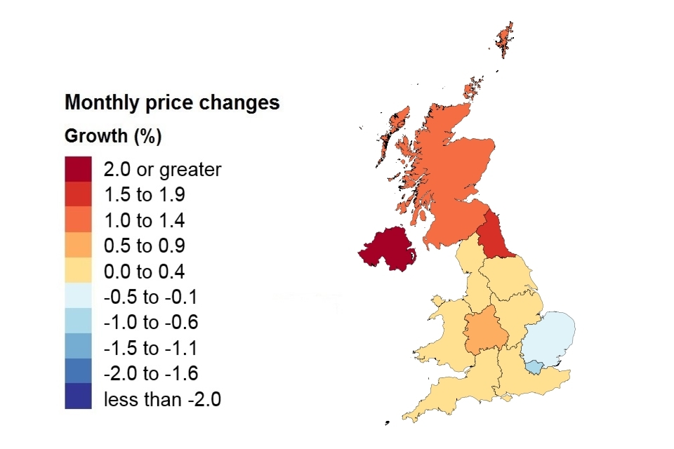Note: The Northern Ireland figure represents a 3-month change and is not comparable with the other regions and countries.