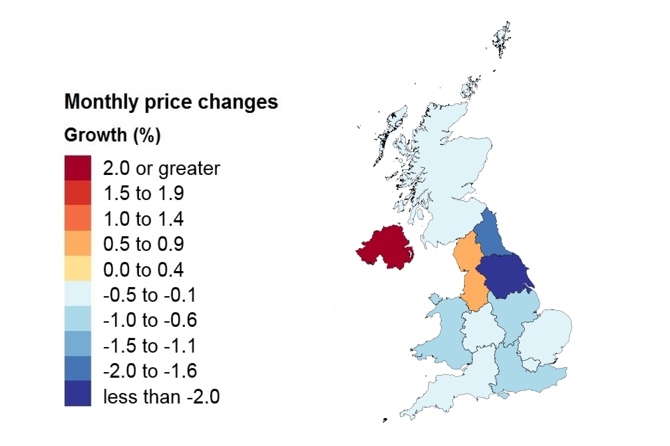 Note: The Northern Ireland figure represents a 3-month change and is not comparable with the other regions and countries.