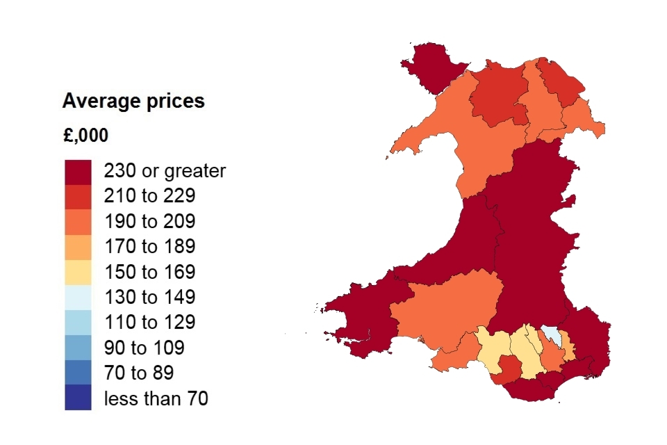 In September 2024, the most expensive area to purchase a property was Monmouthshire, where the average cost was £353,000. In contrast, the cheapest area to purchase a property was Blaenau Gwent, where the average cost was £142,000.