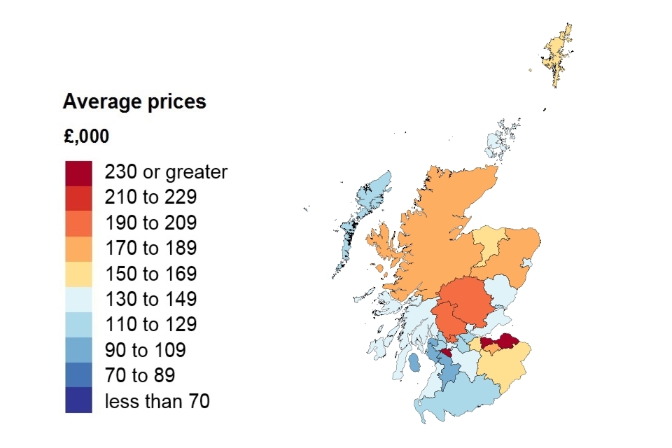 Low numbers of sales transactions in some local authorities, such as Orkney Islands, Na h-Eileanan Siar and Shetland Islands, can lead to volatility in the series.