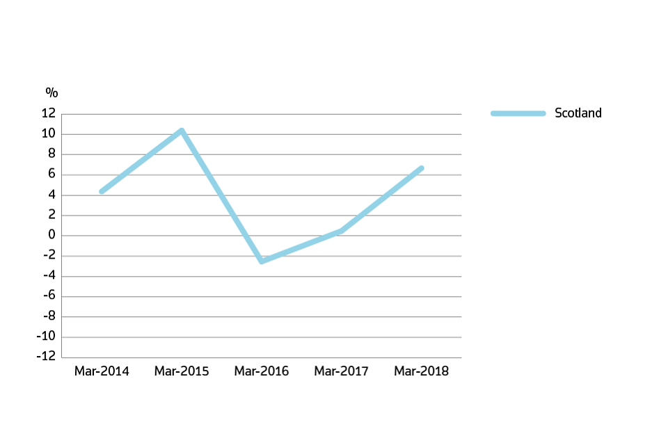 In Scotland, the average price increased by 6.7% in the year to March 2018 (down from 6.8% in the year to February 2018).