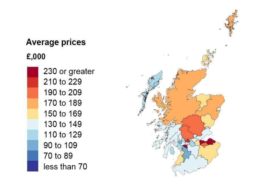 Low numbers of sales transactions in some local authorities, such as Orkney Islands, Na h-Eileanan Siar and Shetland Islands, can lead to volatility in the series.
