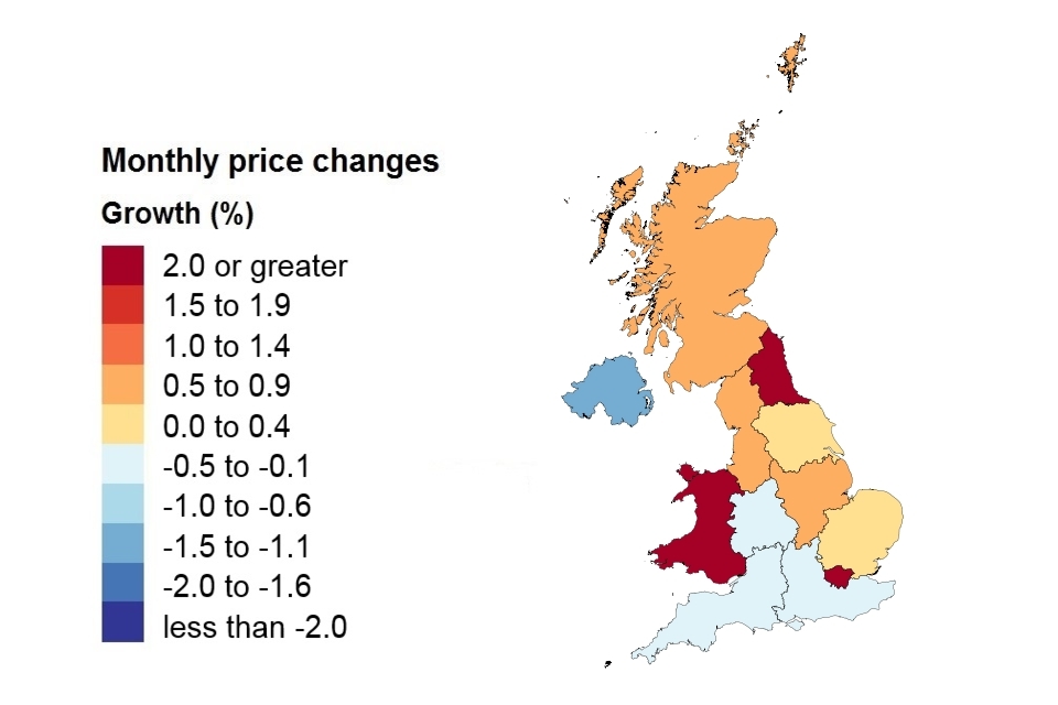 the monthly price change for a property in the UK was