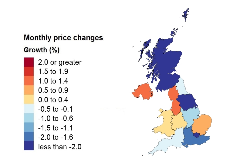 Scotland saw house prices fall by 0.2% over the last 12 months.