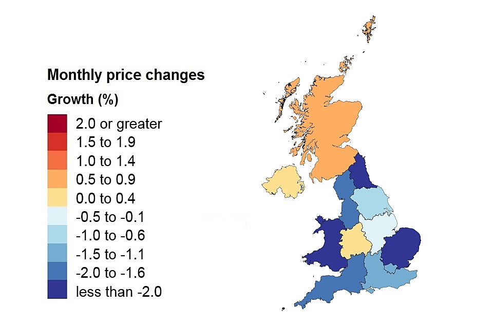 A chart showing the annual price change for the UK by country over the past 5 years.