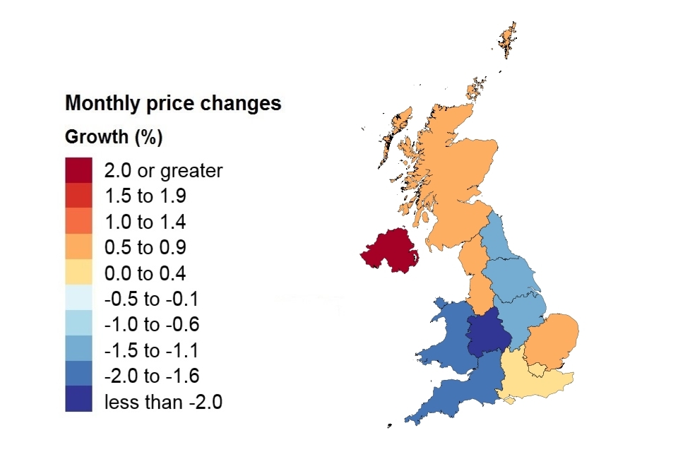 Note: The Northern Ireland figure represents a 3-month change and is not comparable with the other regions and countries.