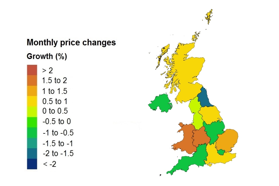 Wales saw house prices increase by 4.3% over the last 12 months.