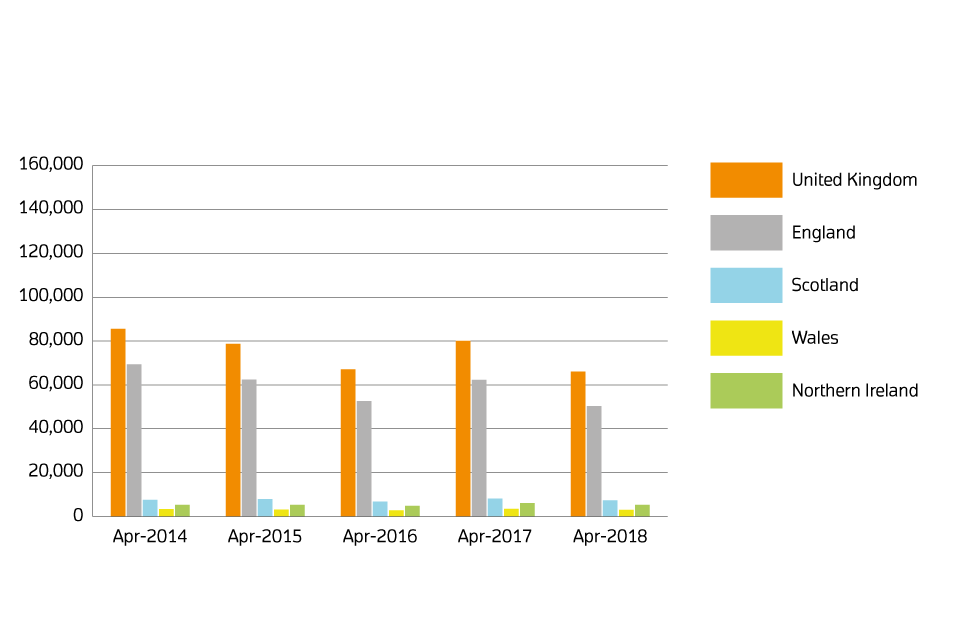 | Northern Ireland (Quarter 2 - 2018) | 5,308 | 6,099 | -13.0% |
