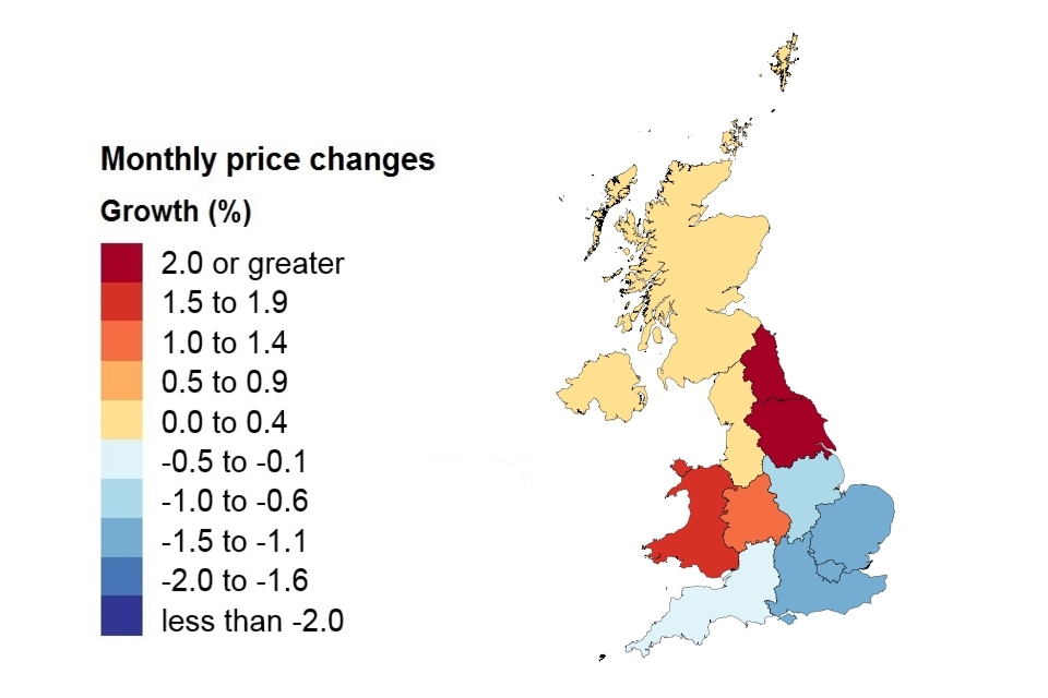 Note: The Northern Ireland figure represents a 3-month change and is not comparable with the other regions and countries.