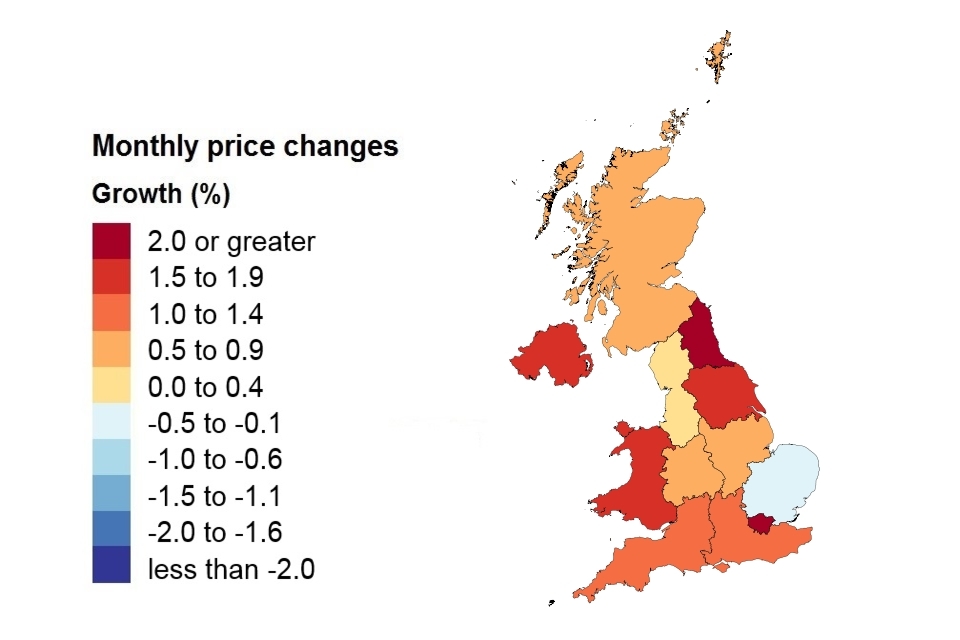 Note: The Northern Ireland figure represents a 3-month change and is not comparable with the other regions and countries.