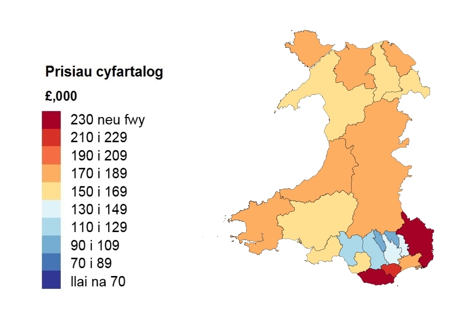 Prisiau cyfartalog yn ôl awdurdod lleol ar gyfer Cymru