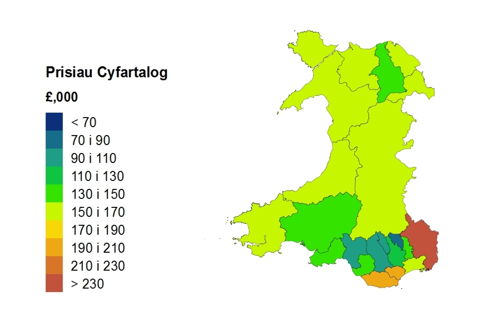 Prisiau cyfartalog yn ôl awdurdod lleol ar gyfer Cymru