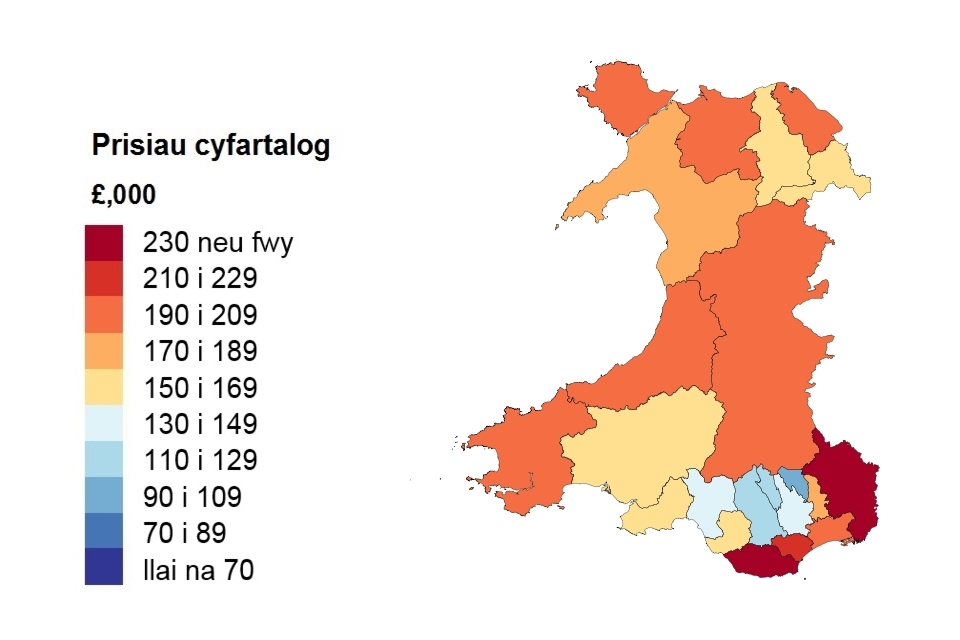 Prisiau cyfartalog yn ôl awdurdod lleol ar gyfer Cymru