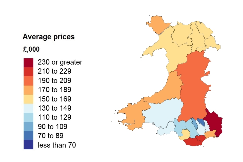 In January 2019, the most expensive area to live in was Monmouthshire, where the cost of an average house was £269,000. In contrast, the cheapest area to purchase a property was Blaenau Gwent, where an average house cost £86,000.