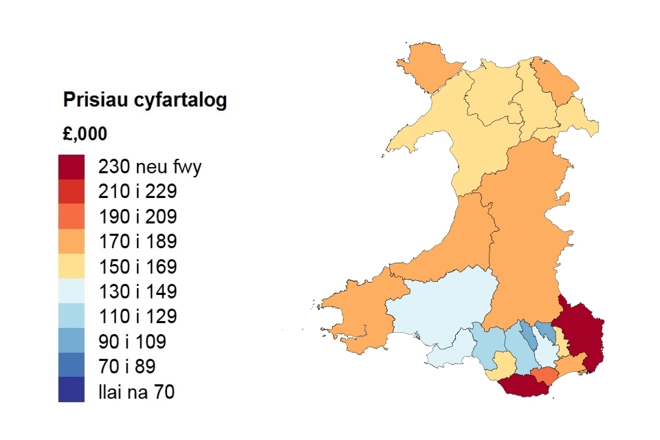 Prisiau cyfartalog yn ôl awdurdod lleol ar gyfer Cymru