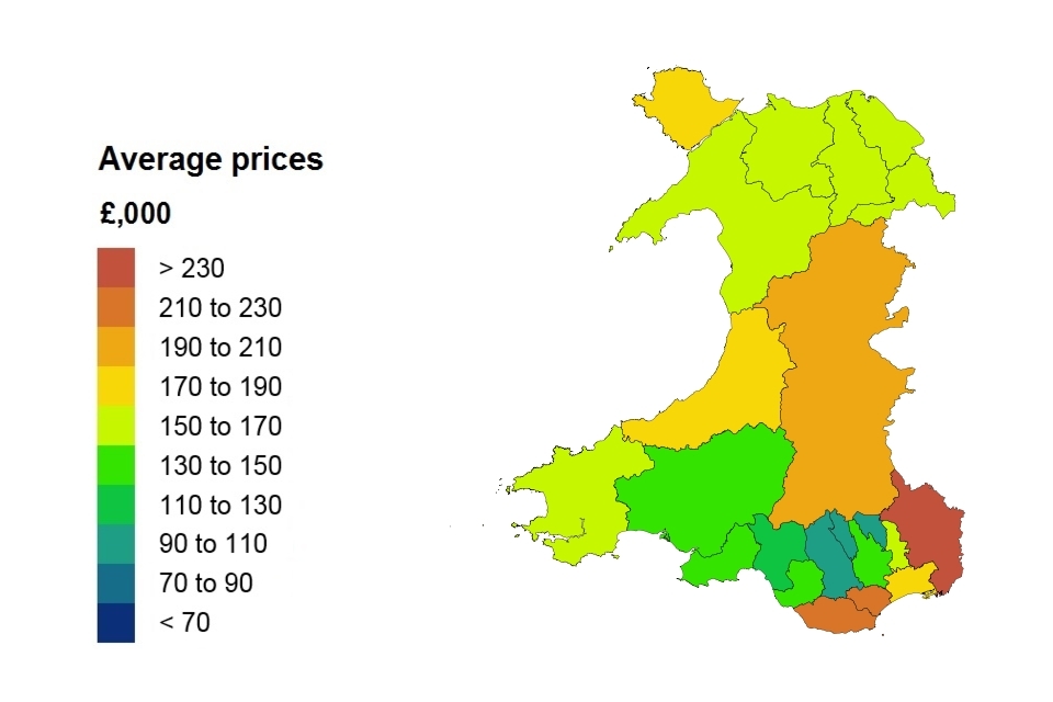In October 2018, the most expensive area to live in was Monmouthshire, where the cost of an average house was £265,000. In contrast, the cheapest area to purchase a property was Blaenau Gwent, where an average house cost £93,000.