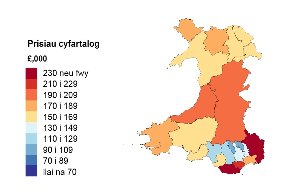 Prisiau cyfartalog yn ôl awdurdod lleol ar gyfer Cymru