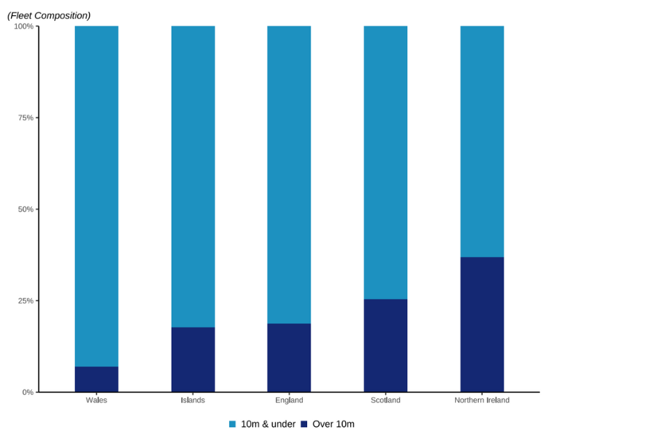 Approximately 21% of the UK fleet is represented by vessels over 10 metres in length, of which 44% are administered in Scotland.