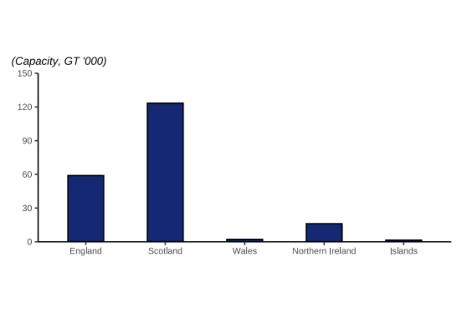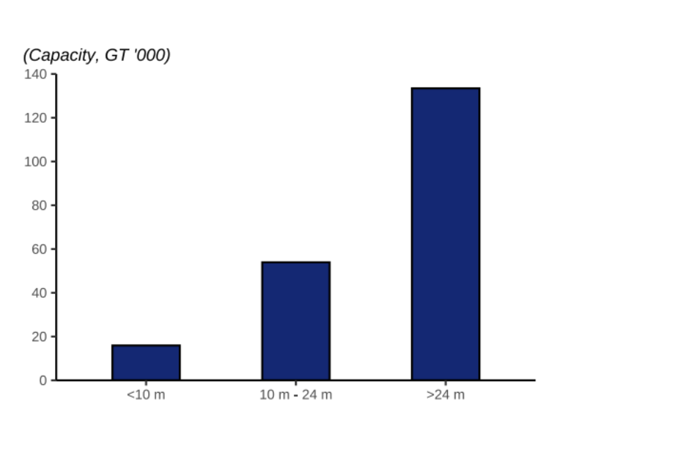 As well as the total number of vessels, the fleet can also be assessed in terms of their capacity and power. Capacity is usually measured in gross tonnage (GT) which is a volumetric measure of a vessel capacity. The power (kW) of a vessel refers to the vessel’s engine power.