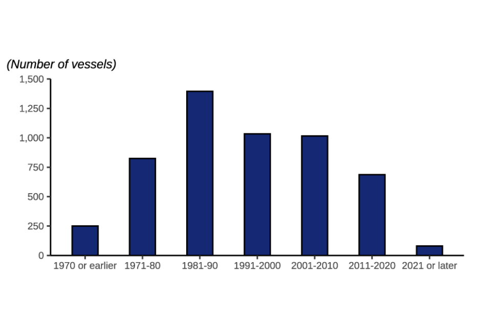 Figure 1.4: Fleet characteristics by age of vessels within the UK fleet.