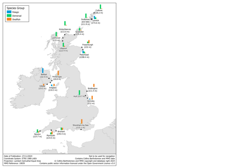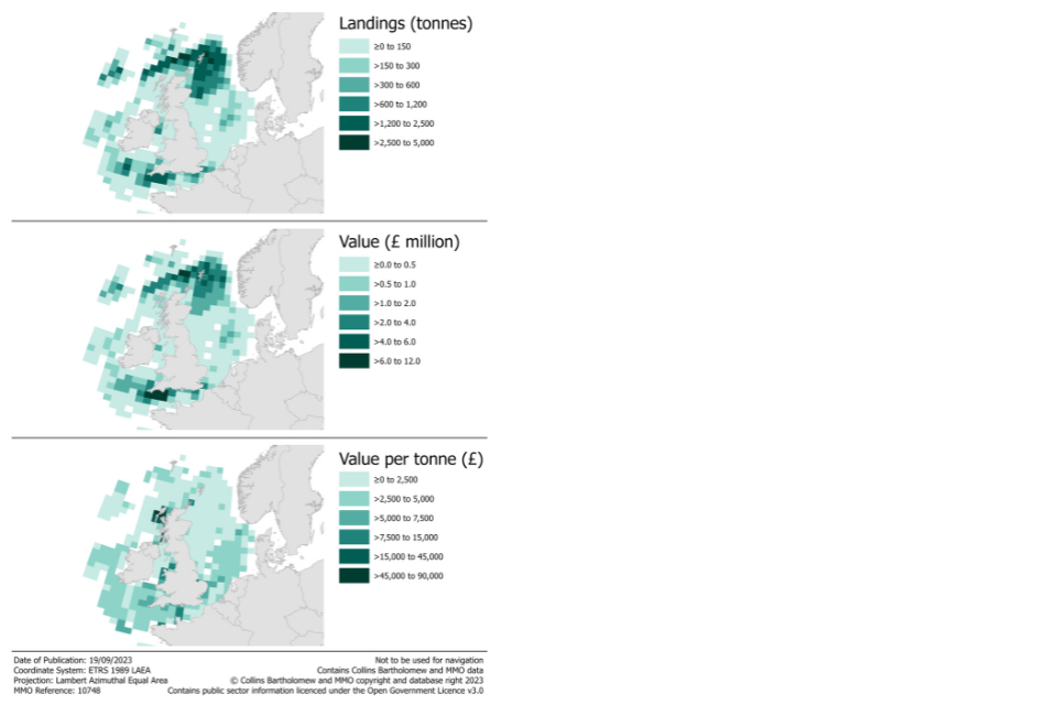 Figure 2.15: Quantity and value of landings in 2023 into UK ports.